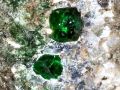Uvarovite is one of the most beautiful species of garnet to the point that some experts call it "the almost perfect gem". It is also the rarest of common garnet species. In the few deposits it can be found, it usually appears in compact formations of crystals only a few millimeters long. Te most important deposit, both for size and beauty of the crystals, is the copper mine at Outokunpu, where magnificent specimens of up to 3 cm were found, much coveted by collectors and never bettered by any other deposit. |
