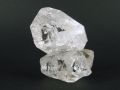 El cuarzo fue elegido por el geólogo friederich Mohs para representar el grado 7 de su famosa escala de dureza propuesta en 1825 y que sigue vigente en la actualidad. Los llamados diamantes de Herkimer son cristales de cuarzo hialino, por lo general biterminados, que aparecen en las oquedades de una roca gris de origen volcánico en el condado del mismo nombre en el estado de New York. Reciben este nombre por su brillo y transparencia excepcionales. En raras ocasiones los cristales se unen para formar grupos bellisimos que alcanzan precios considerables y son muy demandados por los coleccionistas. |