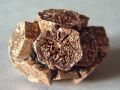 Estas formaciones de cobre son el resultado de un proceso geológico, llamado pseudomórfosis, mediante el cual, una emisión de cobre rellenó "moldes vacíos" dejados en la roca matriz por anteriores cristales de aragonito adoptando su forma. Hasta el momento, parece que solo se han encontrado en este yacimiento y se hicieron famosas a raiz de su descubrimiento en los años 80 del siglo pasado. Son piezas codiciadas por los coleccionistas (ver también CLD005). |