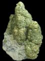Este bello ejemplar de granate demantoide, procede de uno de sus más famosos yacimientos. Su inusual forma se caracteriza por las varias "columnas" (alguna de más de seis cm de altura) compuestas por un agregado de infinidad de cristales bien formados que dan al ejemplar un aspecto muy singular. |