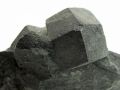 Afrosiderita y chamosita son los nombres, aún no reconocidos, con los que se conoce un mineral del grupo de la clorita. En este ejemplar y mediante un proceso llamado pseudomórfosis, cristales de granate almandino se transformaron en afrosiderita (chamo sita) conservando la forma de rombododecaedro característica de los granates. |