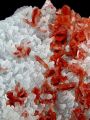 It belongs to the ziolite group, and like other members of this group, it appears in magmatic rocks such as granite or volcanic rocks, and sometimes also in metal seams. It forms typical groupings, and though it is mostly white or colourless, it can also show other colours such as the red in this specimen.