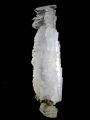 El nombre de "Cuarzo Faden" hace alusión a la presencia de una línea de color blanco que cruza los cristales así llamados (faden significa hilo en alemán). Suelen ser también de desarrollo tabular y a veces, como en este caso, crean unas formaciones muy atractivas.