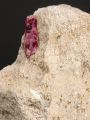 This is the rarest variety of beryl. It was discovered in 1904 in the Wah Wah Mountains of Utah, USA, and this is still the only deposit known. The old synonym of bixbite is used less and less because of the risk of confusion with the mineral bixbyite, which occurs in the same area. The crystals appear in the cracks of volcanic rock and have, as far as is known, never been longer than 30 mm. Prices for top quality natural red beryl can be as high as $10,000 per carat for faceted stones. In USA it is also known as "red emerald", as, being a beryl, it is from the same family as the emerald. |
