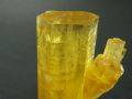 In 1995, golden beryl crystals of extraordinary beauty started appearing in the market. The shape of the crystals was totally unusual in this variety of beryl, and although the sellers asserted that they came from a new deposit called Zelayota Vada (golden water) in Tajikistan, some collectors found this explanation doubtful. A geologist of the Smithsonian investigated the crystals and finally proved that they were aquamarines from Pakistán which had undergone a thermic treatment to change their colour. We include this specimen as a curio. |