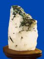 El cuarzo fue elegido por el geólogo friederich Mohs para representar el grado 7 de su famosa escala de dureza propuesta en 1825 y que sigue vigente en la actualidad. Los cristales de cuarzo protagonizan algunas de las más espectaculares inclusiones del reino mineral. Aqui presentamos un magnífico ejemplar de cuarzo, de un tamaño inusual, penetrado por grandes cristales de epidota verde. |