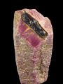 El corindón fue elegido por el geólogo Friederich Mohs para representar el grado 9 de su famosa escala publicada en 1825 que sigue vigente. Es el segundo material más duro de La Tierra. Aunque no son de calidad gema, los cristales de rubí de la India son famosos por su bonito color, hábito de cristalización y tamaño y se utilizan en joyería para tallar cuentas de collares, cabujones etc. El que mostramos aquí destaca por tener un cristál de rutilo incrustado en una de sus caras lo que no es nada frecuente. |