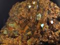 This most beautiful variety of andradite was discovered in a small deposit in Sonora, Mexico, which quickly dried up. In 2004, another deposit was discovered in Japan, which is where our specimen is from. Although it is easier to obtain than other species of garnets in our collection, it is usually found as isolated crystals, no more than 15 mm in length, or as small geodes no larger than three or four cm. This specimen in our collection is so exceptional, not just because of its size, but because it displays lots of crystals on its matrix. Recently we have found out that another deposit has been discovered some ten km from the previous one, where the garnets apparently display beautiful metallic glints of different colours. |