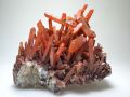 Algunos ejemplares de hematites con cuarzo procedentes de China presentan los cristales de cuarzo teñidos de rojo por la acción del hematites lo que los hace aún más espectaculares. Estos raros ejemplares se agotaron rápidamente. Este ejemplar lo incluímos en el cuarzo porque la presencia de hematites es insignificante.
