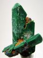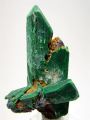 Famosa desde la antigüedad, la malaquita es uno de los minerales decorativos más importantes. Es muy frecuente como producto de la oxidación de otros minerales de cobre pero casi nunca aparece cristalizado si no en costras o nódulos que, con frecuencia, muestran capas de distinta intensidad del color lo que le proporciona una belleza muy característica. Los cristales como los que presentamos aqui son siempre pseudomórficos de la azurita otro carbonato de cobre. (Ver AZR001) |