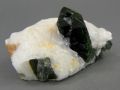 Cuando incorpora a su estructura pequeñas cantidades de cromo recibe el nombre de cromodiopsido y se convierte en una gema de un maravilloso color verde y fuerte pleocroismo. Los cristales de buen tamaño, muy buscados por los coleccionistas, son muy raros y alcanzan precios considerables. Por otra parte la intensidad del color verde hace dificil mostrar su belleza en una fotografía salvo en los ejemplares de pequeño tamaño. |