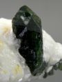 Cuando incorpora a su estructura pequeñas cantidades de cromo recibe el nombre de cromodiopsido y se convierte en una gema de un maravilloso color verde y fuerte pleocroismo. Los cristales de buen tamaño, muy buscados por los coleccionistas, son muy raros y alcanzan precios considerables. Por otra parte la intensidad del color verde hace dificil mostrar su belleza en una fotografía salvo en los ejemplares de pequeño tamaño. |