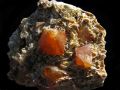 Also known as tungstate, scheelite is an import ore of tungsten. THis specimen shows several octahedrons of scheelite on a bed of muscovite and albite. The crystallized specimens coming from China are, without doubt, the most beautiful in the world.