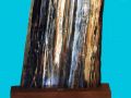 También conocida como xilópalo. La llamada madera fósil o madera agatizada es el resultado de un lento y complejo proceso, llamado pseudomórfosis, en el que moléculas de sílice van substituyendo y reproduciendo con gran exactitud el aspecto que tenía la madera. Finalizado el proceso no queda nada de la madera original por lo que el nombre de madera fósil no es correcto. Esta placa corresponde a un corte