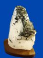 El cuarzo fue elegido por el geólogo friederich Mohs para representar el grado 7 de su famosa escala de dureza propuesta en 1825 y que sigue vigente en la actualidad. Los cristales de cuarzo protagonizan algunas de las más espectaculares inclusiones del reino mineral. Aqui presentamos un magnífico ejemplar de cuarzo, de un tamaño inusual, penetrado por grandes cristales de epidota verde. |