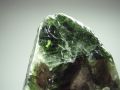 Cuando incorpora a su estructura pequeñas cantidades de cromo recibe el nombre de cromodiopsido y se convierte en una gema de un maravilloso color verde y fuerte pleocroismo. Los cristales de buen tamaño, muy buscados por los coleccionistas, son muy raros y alcanzan precios considerables. Por otra parte la intensidad del color verde hace dificil mostrar su belleza en una fotografía salvo en los ejemplares de pequeño tamaño. |