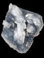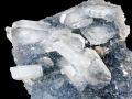 Aparece cristalizada en oquedades de rocas basálticas en un proceso hidrotermal posteior al volcánico o en grietas de rocas graníticas. La apofilita, y en concreto los ejemplares procedentes de la India, se ha hecho con un lugar destacado en las colecciones de minerales por sus hermosos cristales a veces de considerable tamaño, bellos colores y su magnífico brillo. En este ejemplar destacamos la combinación de los cristales de apofilita con la matriz de cuarzo azul. |