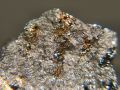 Esta rarisima especie de granate fue descubierta en 1969 en una mina de manganeso, con el que siempre aparece asociado, de Ouarzazat (Marruecos). Los cristales pseudooctaédricos rara vez superan los 3 mm y su color suele ser rojo muy oscuro que parecen negros. Posteriormente se descubrió otro yacimiento en Sudáfrica de donde proceden los mejores ejemplares. |