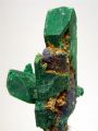 Famosa desde la antigüedad, la malaquita es uno de los minerales decorativos más importantes. Es muy frecuente como producto de la oxidación de otros minerales de cobre pero casi nunca aparece cristalizado si no en costras o nódulos que, con frecuencia, muestran capas de distinta intensidad del color lo que le proporciona una belleza muy característica. Los cristales como los que presentamos aqui son siempre pseudomórficos de la azurita otro carbonato de cobre. (Ver AZR001) |