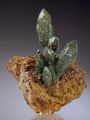 El cuarzo fue elegido por el geólogo friederich Mohs para representar el grado 7 de su famosa escala de dureza propuesta en 1825 y que sigue vigente en la actualidad. El color verde de esta variedad, conocida también como cuarzo prasio, se debe a numerosas inclusiones de hedenbergita una variedad de color verde/negro del diopsido. Los mejores yacimientos de este tipo de cuarzo son el de la isla de Serifos en Grecia, el de la región de Dalnegorsk en Rusia, y el de donde procede este ejemplar. Es curioso constatar que los ejemplares de estos tres yacimientos, presentes en nuestra colección, son muy similares y podrían confundirse entre si. Todos ellos aparecen acompañados de granate y muestran el mismo hábito de cristalización. |